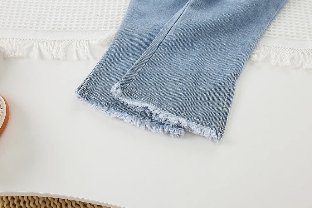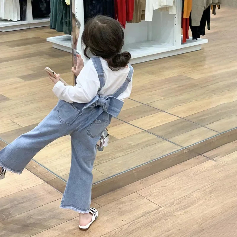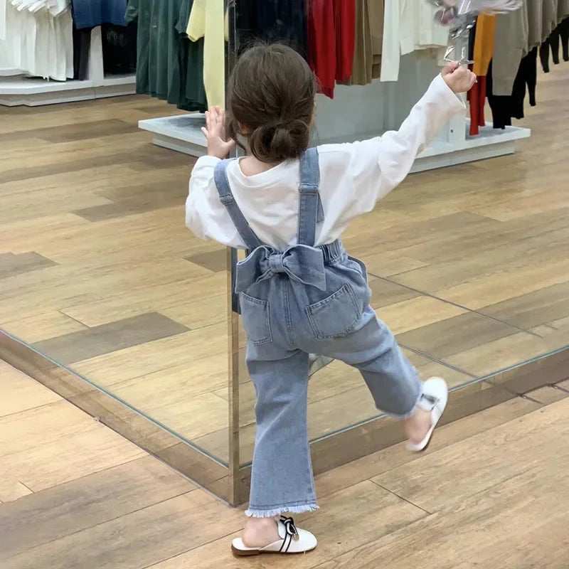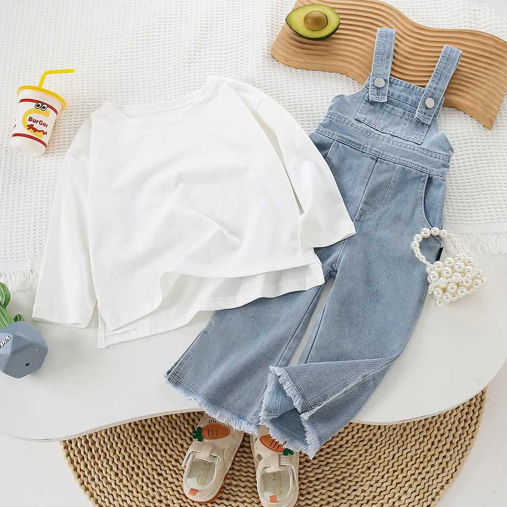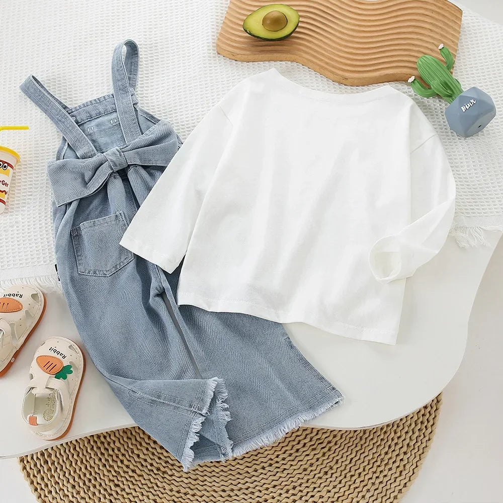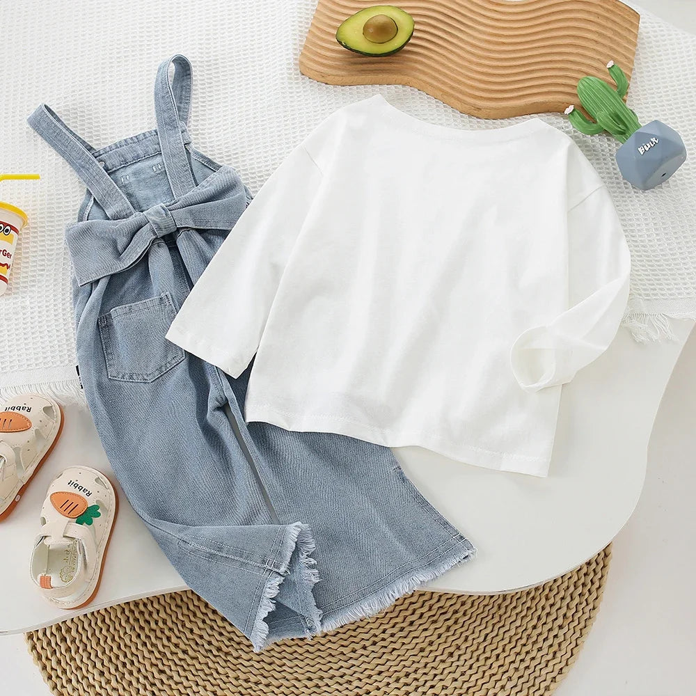 Children's Clothing Sets Long-sleeved T-shirt + Bow Suspenders Jeans Kids Clothes Girls Baby Girl Outfit Set for 2 To 6 Years