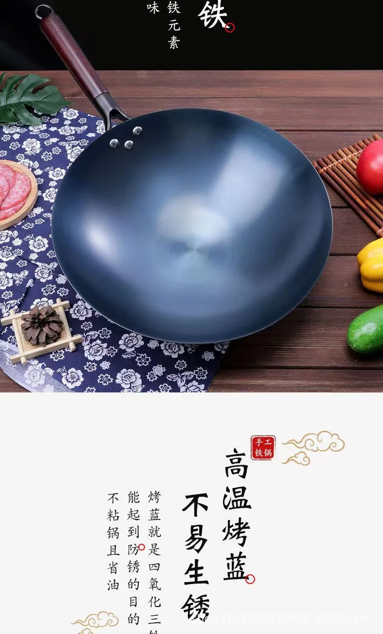 Household wok, round bottomed iron pan, non stick pan. Once cooked, uncoated wok, no need to open