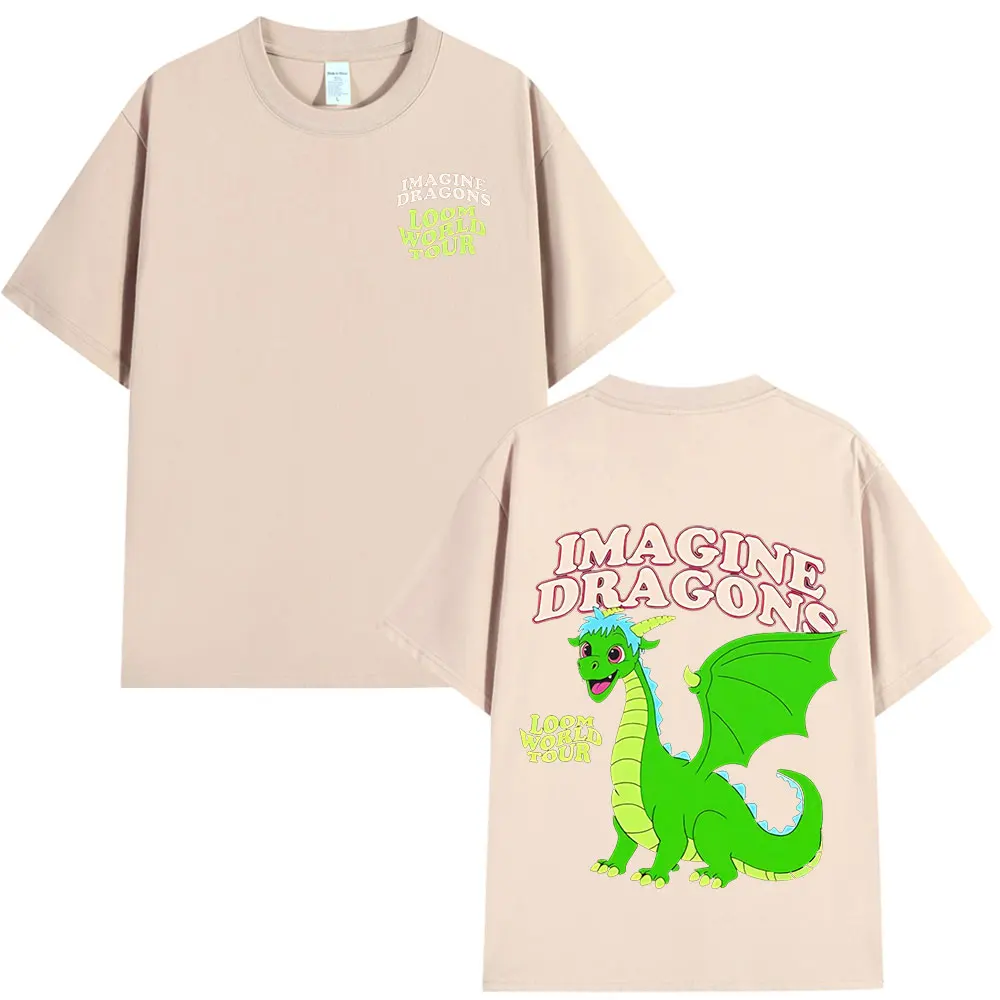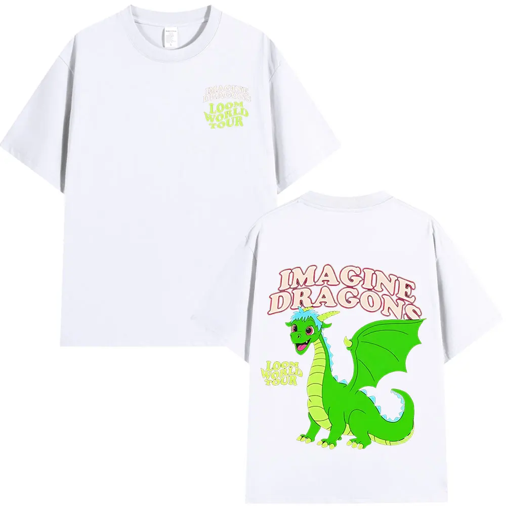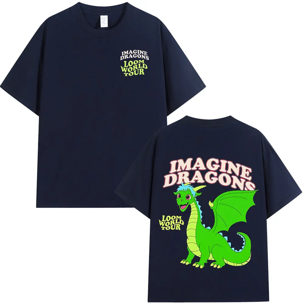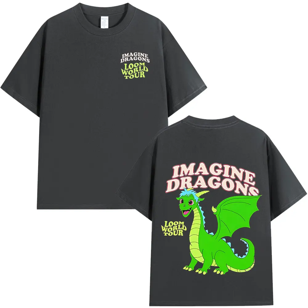 Imagine Dragons Loom World Tour 2024 T Shirt Rock Band Cartoon Dragon T-shirts Men Women High Quality Cotton Short Sleeve Tshirt