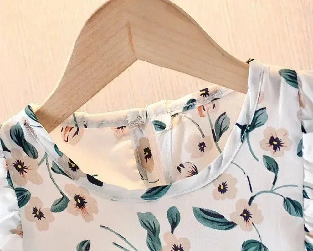 2PCS/Sets Baby Girls Clothes Chiffon Shirt Flower Print Children Girls Clothes