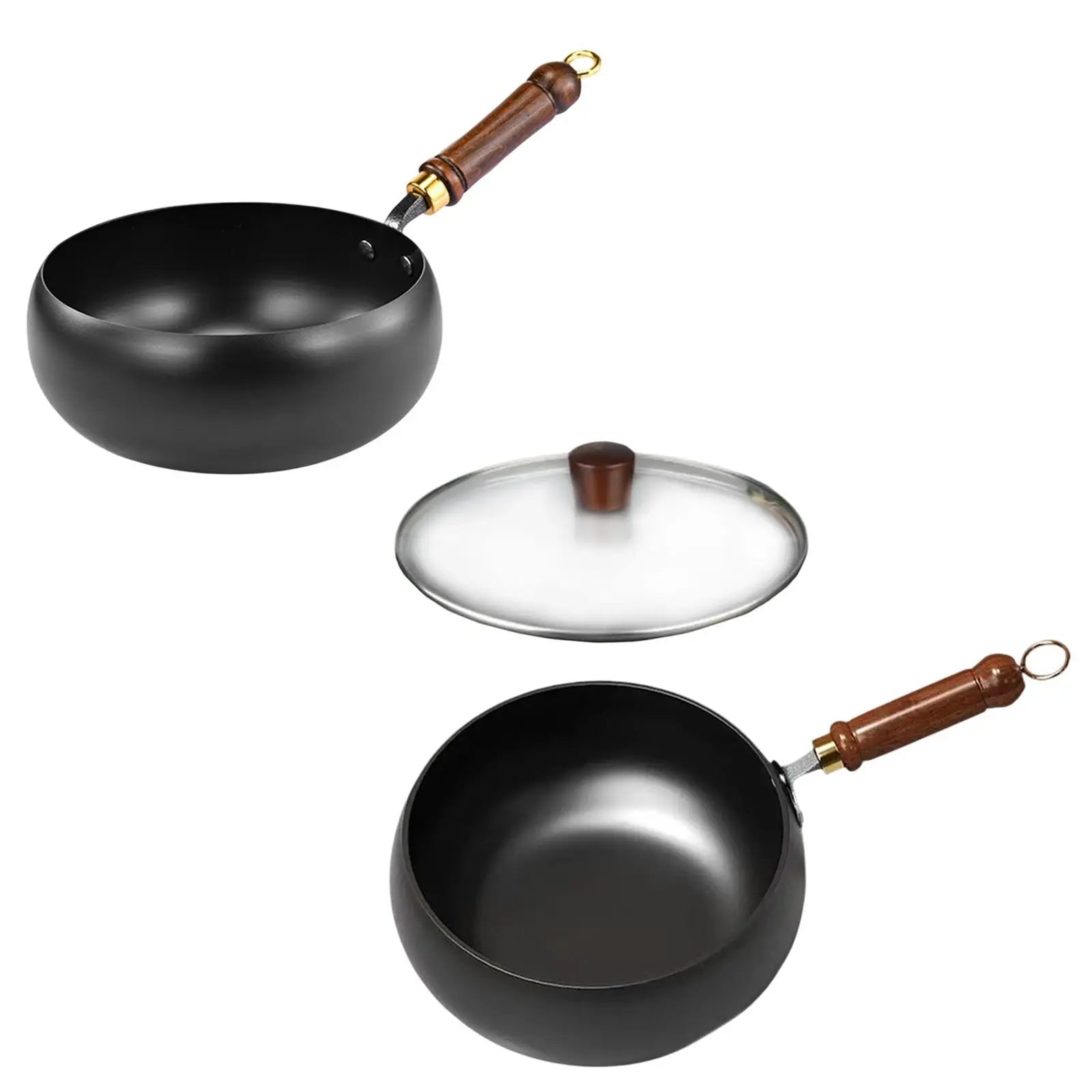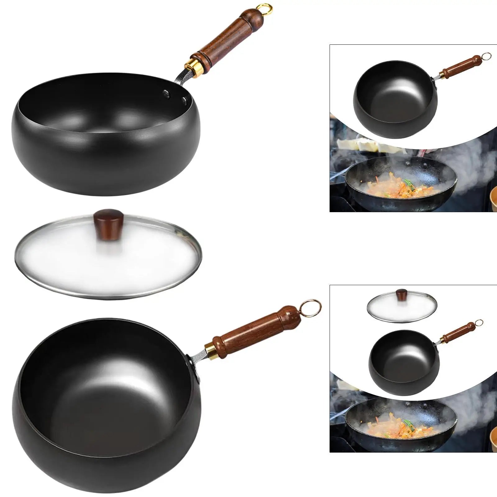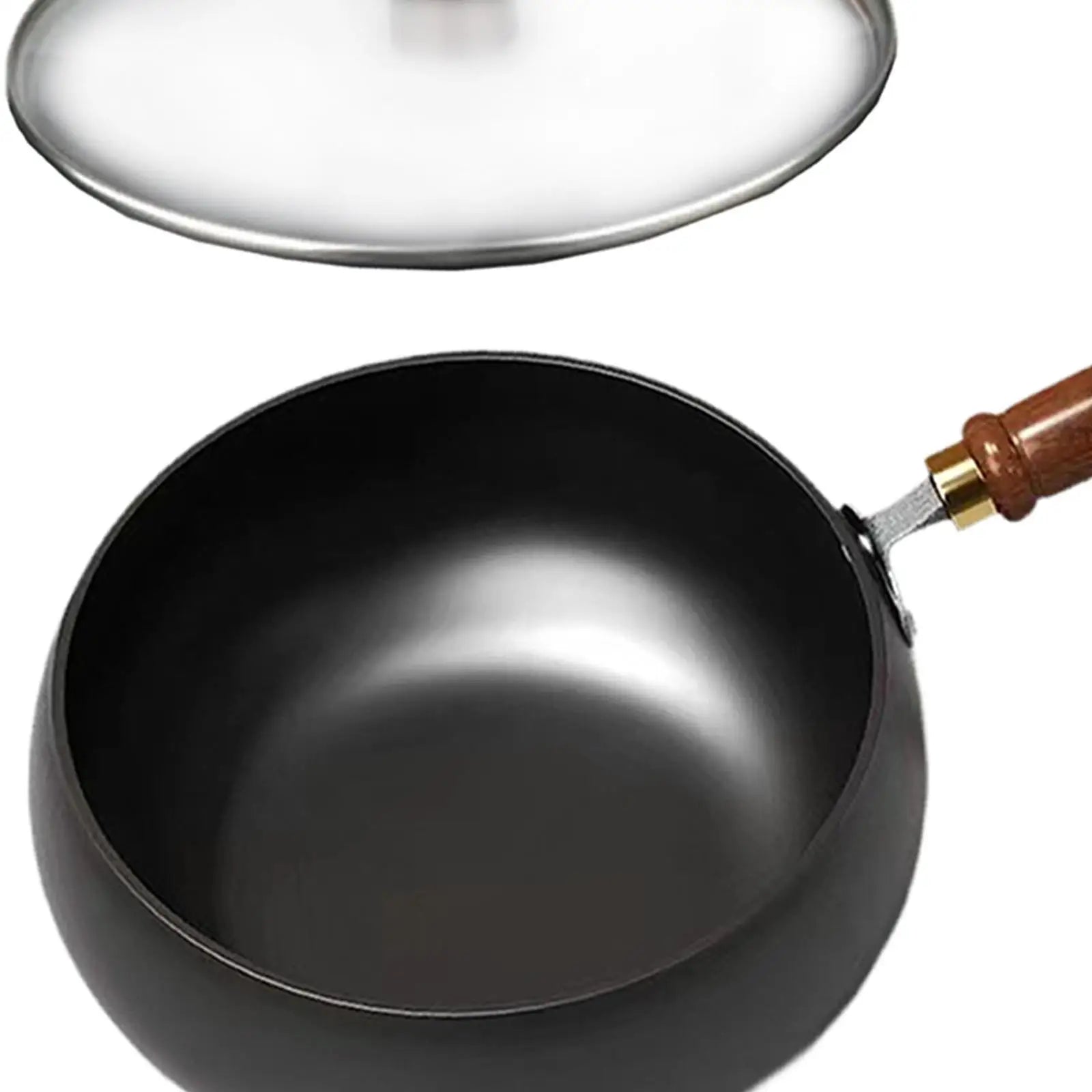 Nonstick Wok Frying Pan Wooden Handle Induction Cooker Boiling No Coating Gas Chinese Wok Flat Bottom for Kitchen Camping