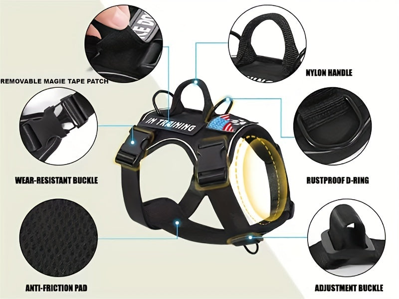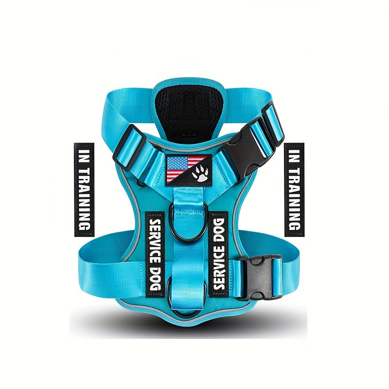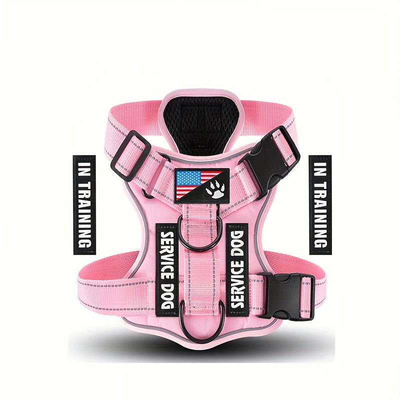 Service Dog Harness, Reflective Dog Vest Harness with 5pcs Patches, Adjustable Soft Oxford Pet Harness, Inner Layer Mesh, Easy to Control for Small Medium Large Dogs Random Buckle