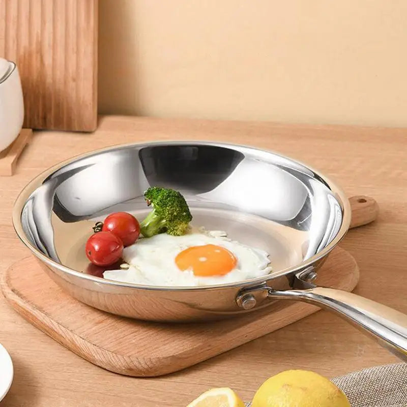 Stainless Steel Frying Pan Non-Stick Pan Fried Steak Pot Uncoated Kitchen Cookware For Home Gas Stove and Induction Cooker