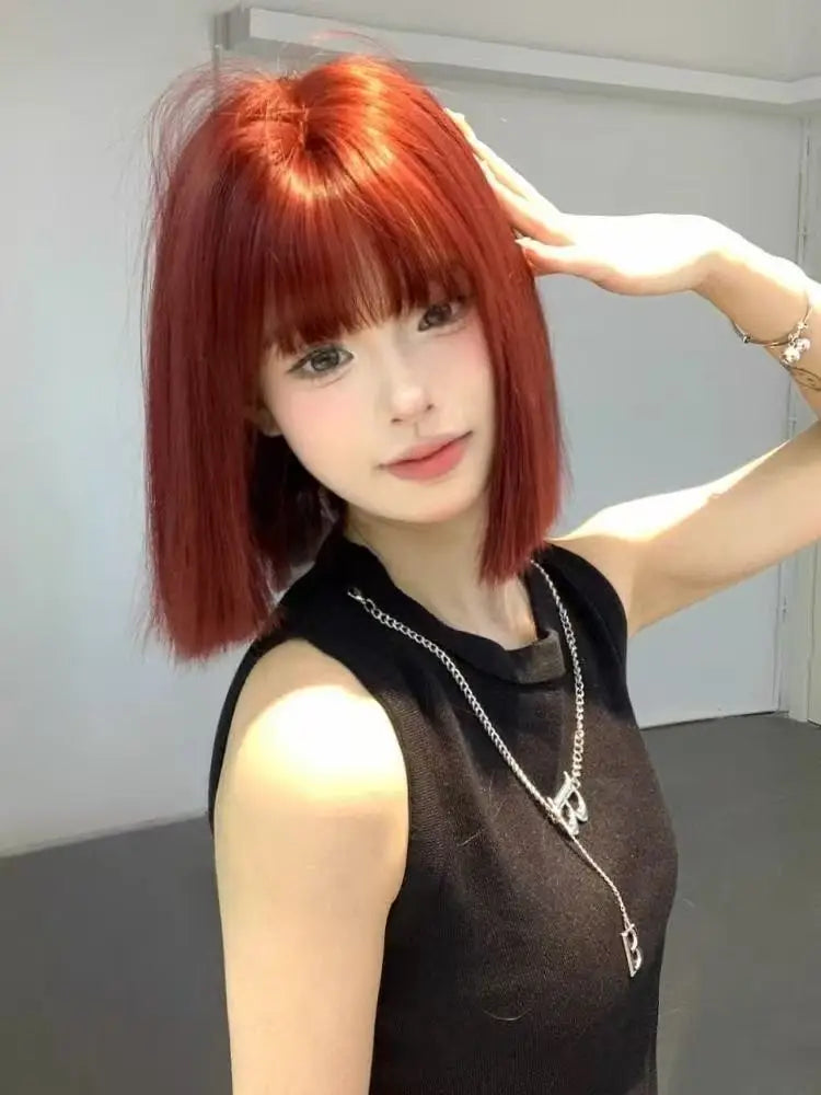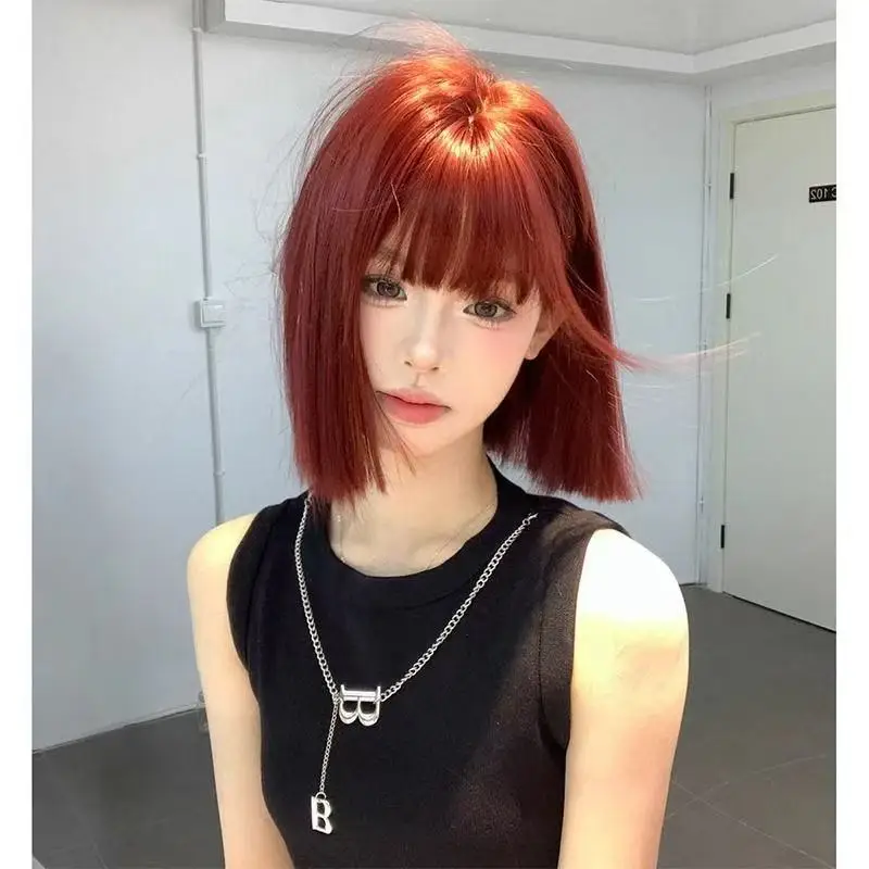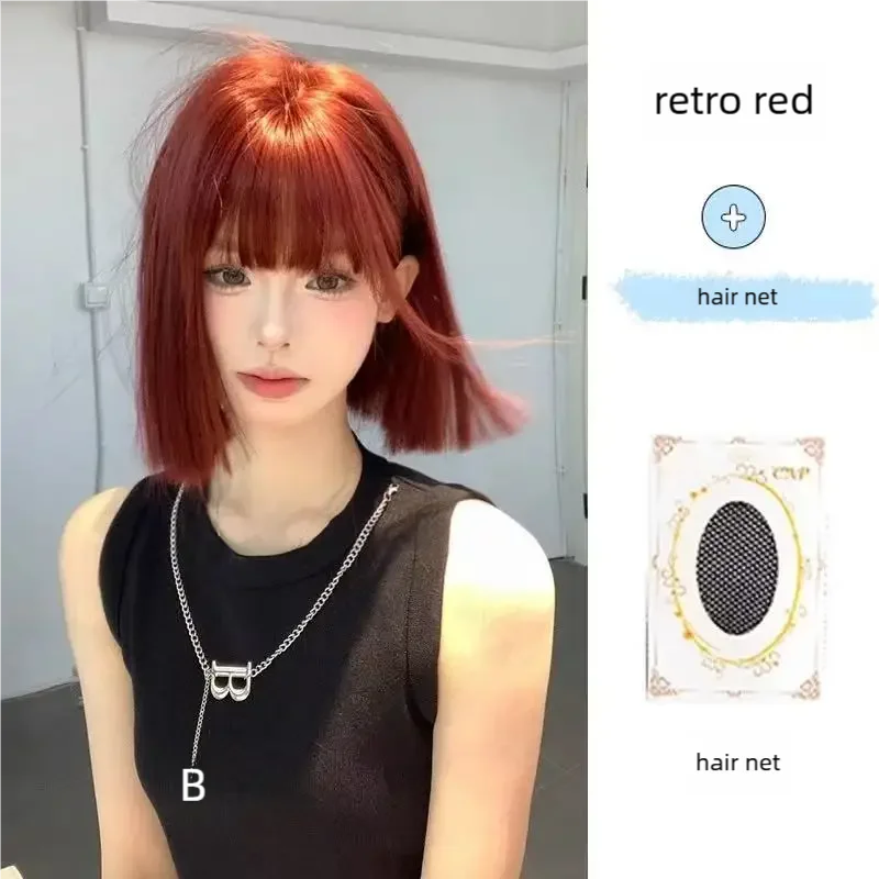 Wig Short Hair Female Internet Celebrity Short Hair Daily Lolita Natural Bangs Full Head Cover Black Red Supernatural Synthetic